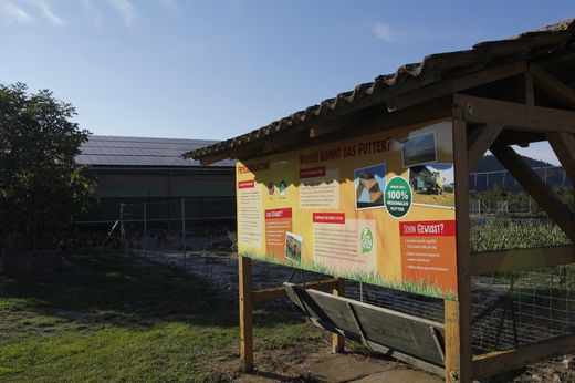 Durch große Schaufenster können die Besucher einen direkten Blick in den Stall werfen. Über Informationstafeln im Innen- und Außenbereich werden alle Themen rund um das Huhn und die unterschiedlichen Haltungsformen anschaulich erläutert. Dazu gehören auch Themen wie z.B. „Was fressen die Hühner?“ oder „Wie sieht der Tagesablauf aus?“.